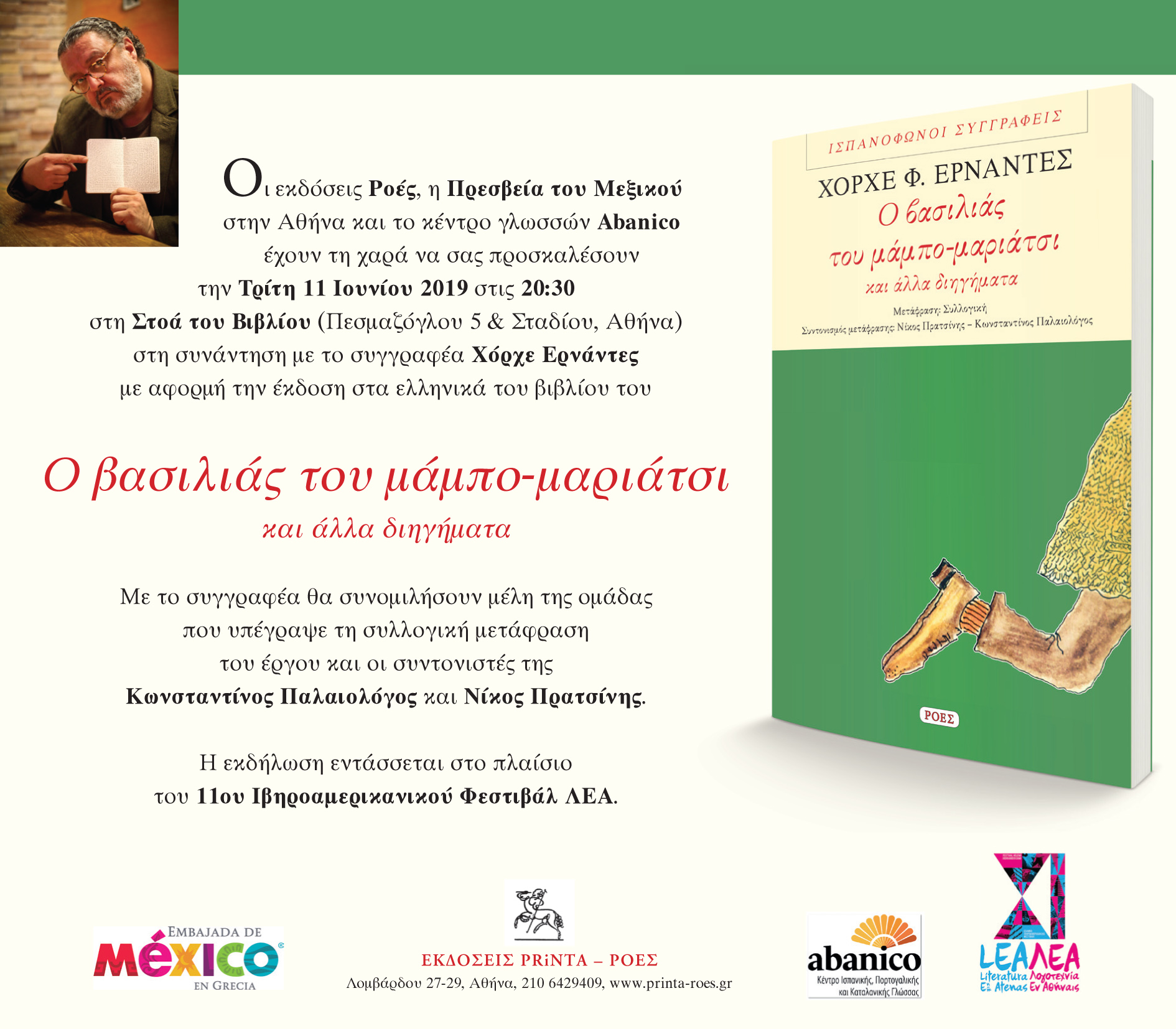 Ο Χόρχε Ερνάντες (1962, Πόλη του Μεξικού) είναι από τους πλέον καταξιωμένους εν ζωή συγγραφείς του Μεξικού. Έχοντας μεγαλώσει στις ΗΠΑ, ζει πλέον στη Μαδρίτη. «Μεξικανότατος», ωστόσο, και μέγας παραμυθάς, ξέρει να βεβηλώνει με πανουργία, περίσσια χάρη και τρυφερή αγάπη τα στερεότυπα των Μεξικανών και των «άλλων» για την πολυπληθέστερη και πιο αινιγματική ισπανόφωνη χώρα. Έχει γράψει διηγήματα, μυθιστορήματα, δοκίμια και χρονικά, επηρεασμένος από τους μεγάλους σύγχρονους Μεξικανούς κλασικούς (Πας, Φουέντες, Ρούλφο κ.ά.), τους κλασικούς Ισπανούς, καθώς και ουκ ολίγους γνωστούς Αμερικανούς συγγραφείς.