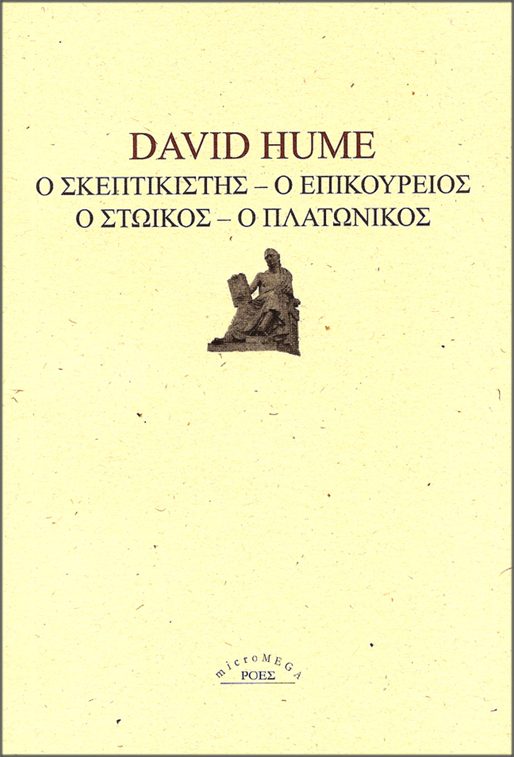 Ο μεγάλος Σκωτσέζος διαφωτιστής και ιστορικός Ντέιβιντ Χιουμ (1711-1776) θεωρείται ως ο «απόλυτος σκεπτικιστής» ή ο κατ’ εξοχήν ηθικός φιλόσοφος. Στα τέσσερα αυτά δοκίμια, που περιλαμβάνονται στο δίτομο έργο-επιτομή της φιλοσοφίας του Δοκίμια ηθικά, πολιτικά και λογοτεχνικά (1758), ο Χιουμ αξιολογεί τέσσερις μεγάλες φιλοσοφικές σχολές της αρχαίας Ελλάδας αναζητώντας απαντήσεις στα κεντρικά ερωτήματα που διέπουν το έργο του: Ποια είναι η πραγματική φύση του Καλού και του Κακού; Αρετή και ευτυχία είναι έννοιες σύμφυτες; Ποια είναι η στάση ζωής που μας συμφιλιώνει πληρέστερα με τον εαυτό μας; Στην εποχή του, οι θέσεις του αντιμετωπίσθηκαν συχνά ως αιρετικές. Σήμερα, εκπλήσσουν με την επικαιρότητά τους.