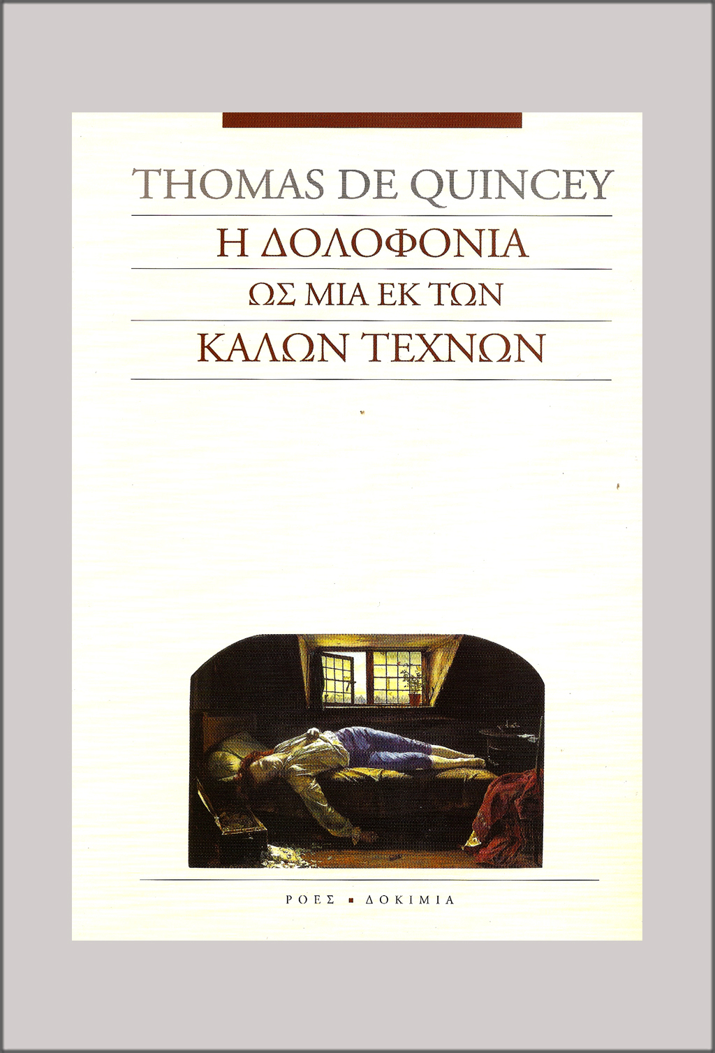 Ποια είναι άραγε η πρόθεση του συγγραφέα πίσω από την έκτυπη αντίθεση των δύο όρων του τίτλου που στεγάζει τούτο το προκλητικό κείμενο; Η ιδέα πως ο φόνος μπορεί να εξεταστεί από την αισθητική άποψη, και σύμφωνα μάλιστα με τους κανόνες που διέπουν ένα έργο τέχνης, με το να ευτελίζει και να συμφύρει δύο τάξεις νοημάτων απολύτως αντίθετες μεταξύ τους, μοιάζει όντως κωμική και παρακινεί το γέλιο. Ο ίδιος ο ντε Κουΐνσυ παραδέχεται ότι ένας από τους σκοπούς του είναι να προκαλέσει και μια ιλαρή διάθεση, δηλαδή μια διάθεση θετική απέναντι στα πράγματα, μια διάθεση πλήρους αποδοχής των φανερών τους αντιθέσεων. Ο αναγνώστης, μολαταύτα, νιώθει πως το πράγμα δεν παύει να είναι σοβαρό. Και το σοβαρό που προτείνεται με τη μορφή αστεϊσμού είναι ακριβώς το αντίθετο της ειρωνίας, το χιούμορ.