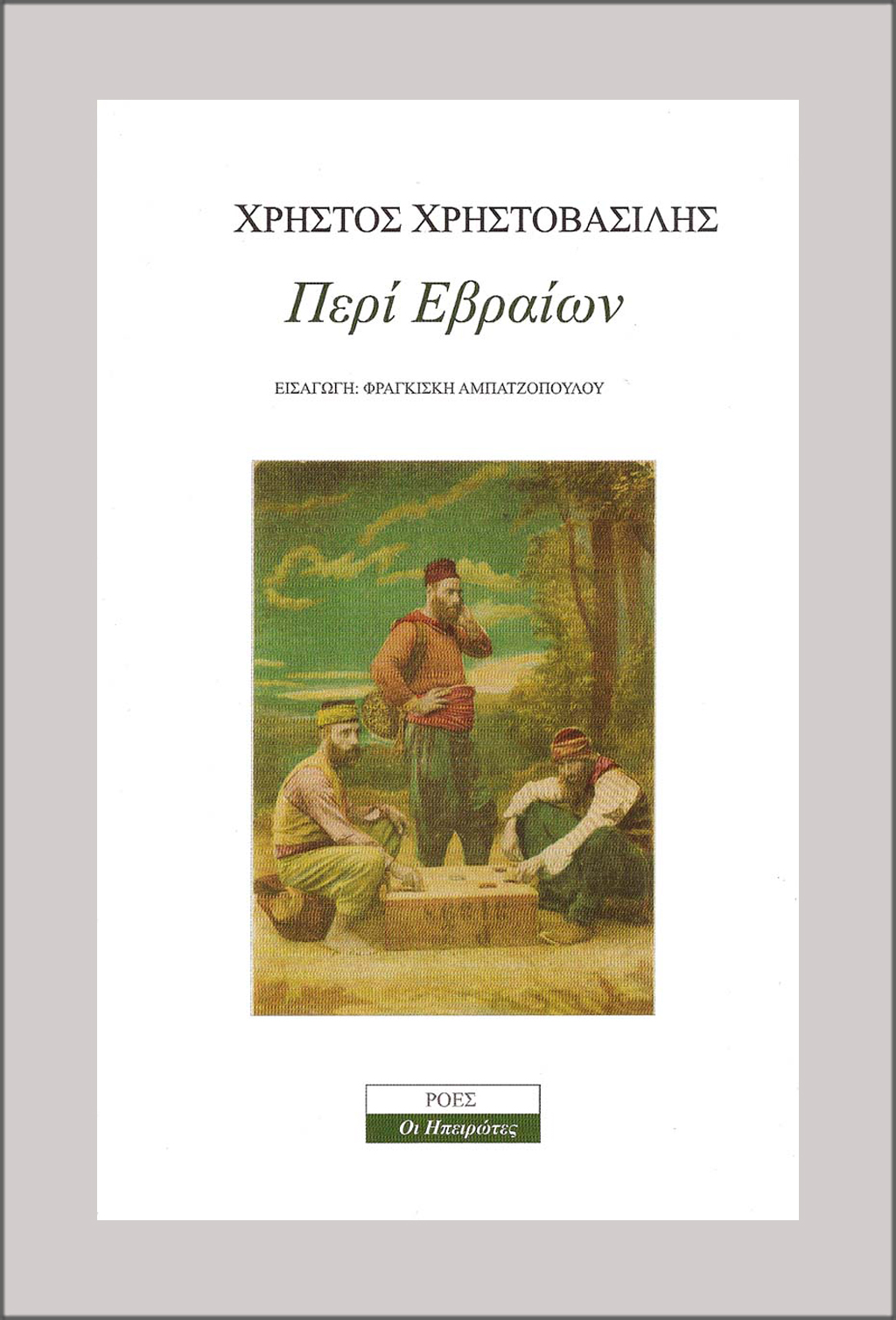 Σ’ αυτό το βιβλίο δημοσιεύονται τρία άγνωστα κείμενα του Xρήστου Xρηστοβασίλη, τα οποία, αν και ανήκουν σε διαφορετικά λογοτεχνικά είδη, έχουν θέμα κοινό, τους Eβραίους. Tα κείμενα αυτά τεκμηριώνουν με τρόπο μοναδικό το εύρος των ενδιαφερόντων και τη φωτεινή προσωπικότητα ενός συγγραφέα που μας είναι περισσότερο γνωστός για τα ηθογραφικά του διηγήματα, και λιγότερο για την περιπετειώδη, πολυκύμαντη ζωή του, την ευρυμάθειά του, την αγάπη του όχι μόνο για τη δική του πατρίδα αλλά και για τις πατρίδες των άλλων, τον αγώνα του κατά του σκοταδισμού και το ενδιαφέρον του για τον πάσχοντα συνάνθρωπο. Παράλληλα, η δημοσίευση αυτών των κειμένων προσφέρει πολύτιμο υλικό στην έρευνα της ιστορίας των ιδεών και των πολιτισμικών εικόνων και αντιλήψεων στην Eλλάδα, όπως εκφράστηκαν μέσα από τη λογοτεχνία, στην πολύ κρίσιμη περίοδο του τέλους του 19ου και των αρχών του 20ού αιώνα.