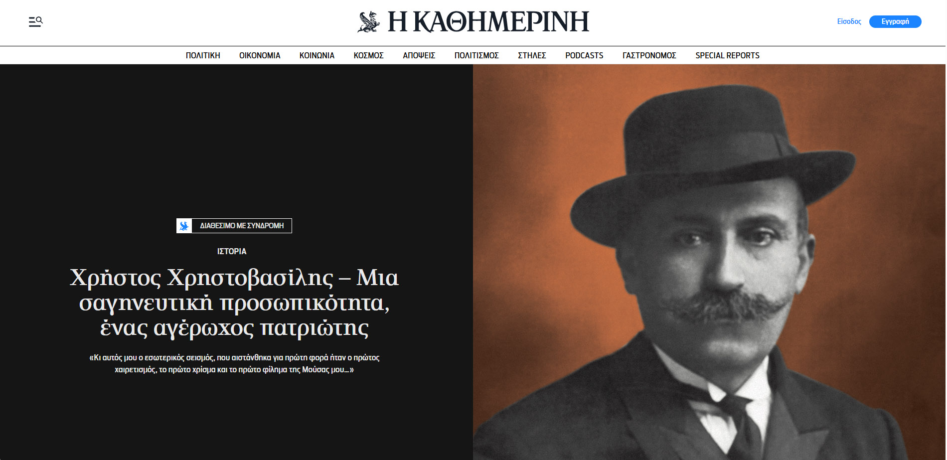 Εκτενές άρθρο για τον Χρ. Χρηστοβασίλη στην Καθημερινή (απαιτείται συνδρομή)